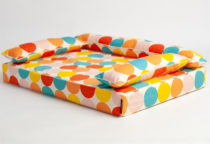さらっとした綿100%の生地を使用しています。底面は光触媒機能を備えた綿100%生地を使用しています(※「光触媒機能」については下記をご覧ください)。生地は上質で安心の日本製です。